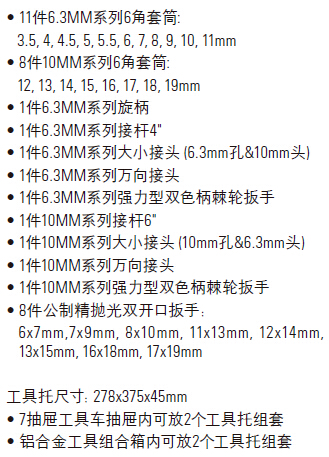 36件套6.3, 10MM系列公制工具托