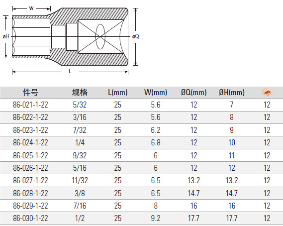6.3MM系列英制6角标准套筒