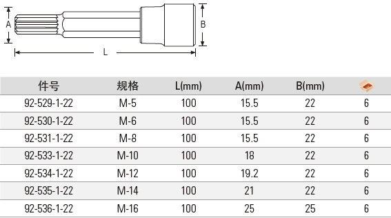 12.5MM系列100MM长12角旋具套筒