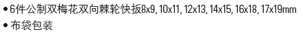 6件公制双梅花双向棘轮快扳组套